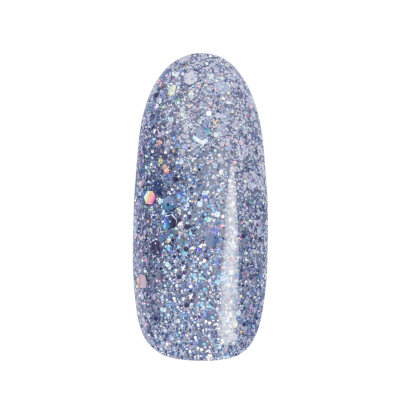 It is shiny, beautifully gleams in the light, and always impresses with its appearance. This is a blue hybrid nail polish in a water blue shade. Glance has semi-transparent coverage and consists of many holographic particles that scatter light. Just two layers are enough to create a beautiful manicure that will last for 3 weeks. Choose the blue sparkle of azure particles and envelop your nails in a holographic sheen.