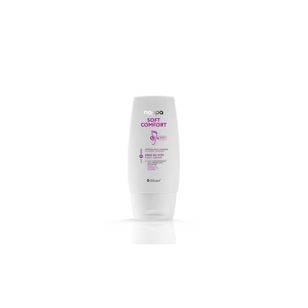 Nappa Soft Comfort Relaxing Lavender Foot Cream – light cream based on the complex of essential oils: almond, grape seed and lavender. This mix provides adequate moisturization and lubrication for the skin of your feet. Highly recommended for those with dry, tired, rough and irritated feet. Soothing, toning and refreshing of epidermis. Absorbs quickly and doesn't leave any sticky residue on the skin.