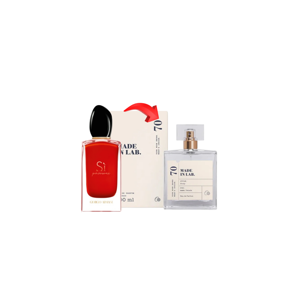 Made in Lab 70 is an eau de parfum for women inspired by a well-known red fragrance associated with elegance and passion. This composition blends intensity, sensuality and modern sophistication, creating a scent loved by those who enjoy expressive, vivid perfumes.