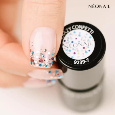 Crazy Confetti is a transparent hybrid nail polish with blue-purple particles that will add charm to any style. You can apply this product on a cured base or any shade of hybrid nail polish – it will look equally beautiful on pastel as well as neon colors. Have fun with your look and experiment with expressive nails that will highlight who you are in just a few moments!