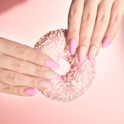 Golden foil particles embedded in a hybrid base? It's possible! Discover the new product from NEONAIL that gives you many possibilities to express your style! Pink Sparkle can be used as a standard base for hybrid nail polish on a natural nail plate and as a product for its extension. You can apply it both on a template and on tips, and easily build up the nail.