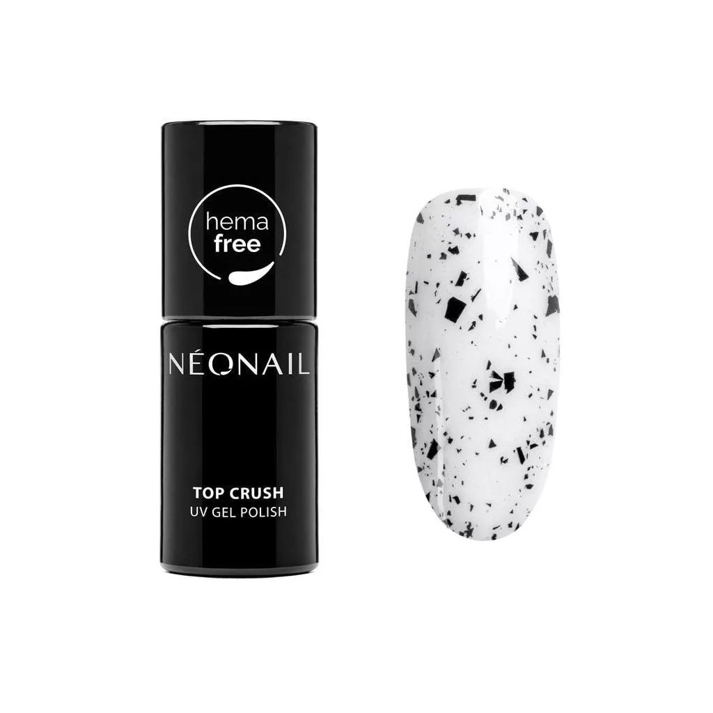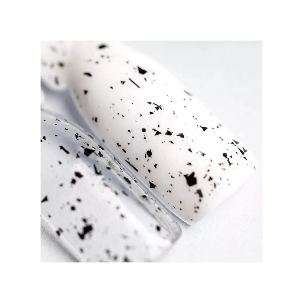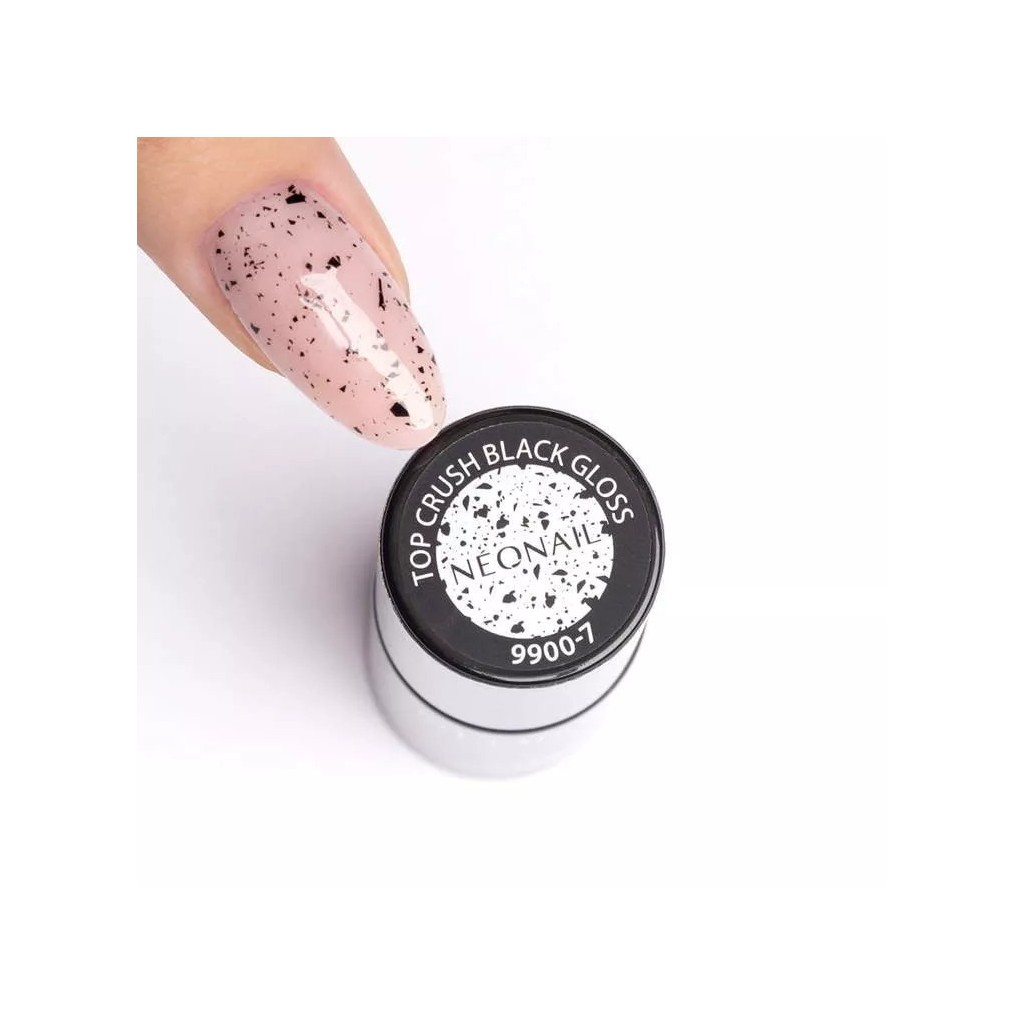 TOP CRUSH BLACK GLOSS is a decorative UV gel top with particles. Its consistency allows fast and seamless application. With this product even beginners who want to adorn a bit their nail stylisation will get along. TOP CRUSH BLACK GLOSS is a great way to give a manicure a completely new character. And all this thanks to black, irregular particles that beautifully adorn each shade of UV gel polish!