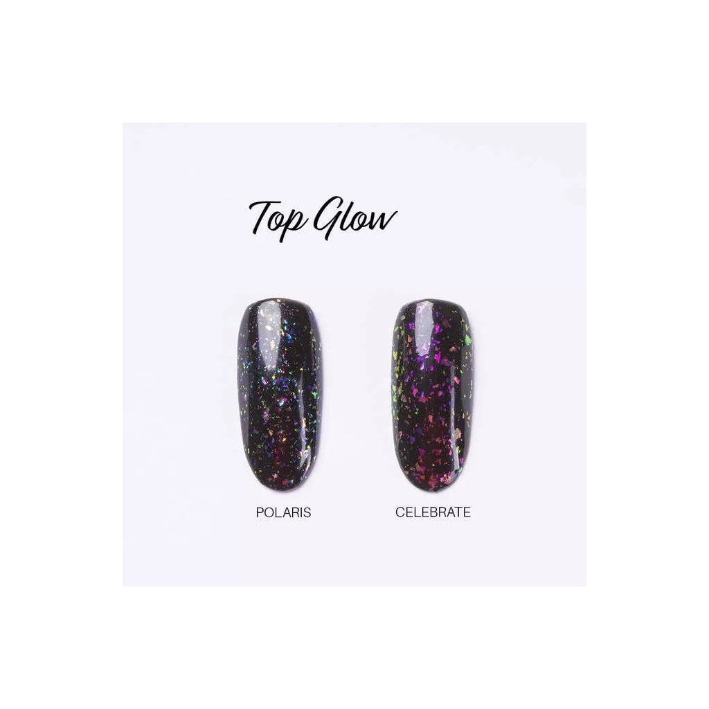 A top coat with particles for hybrid manicure is a great way to create beautiful, feminine nail decorations in just a few moments. You don't need to apply many products to achieve a spectacular effect - reach for Top Glow Polaris and surprise others with your extraordinary nail styling! You can now enhance your hybrid manicure in just a few moments - would you like to give it a try?