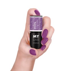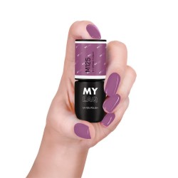 A pearly purple nail polish, showing feminine strength and elegance with a positive, informal spontaneity.
